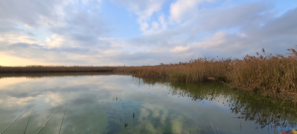 바람 한점없는 전라남도 해남 붕어낚시에 우리들 마음은 설레입니다