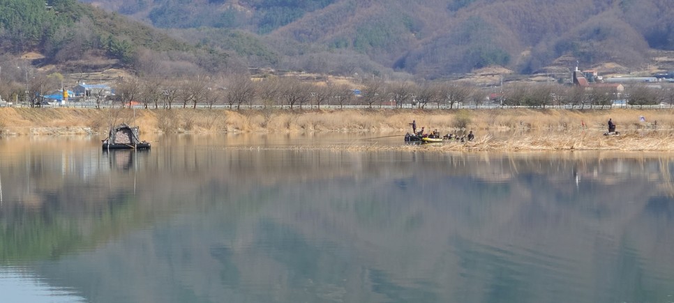 요사이 붕어들이 나온다는 소문에 보트꾼들도 자리를 하는 보청천