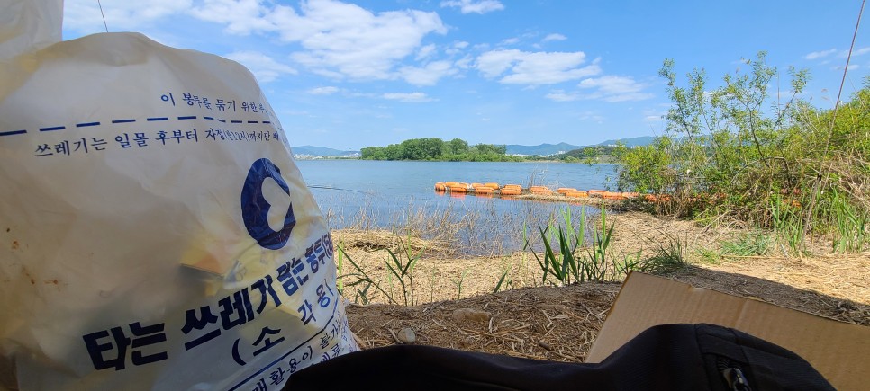 잠시 쓰레기 정리를 하고 호숫가에 앉아 모닝 커피를 한잔해 봅니다