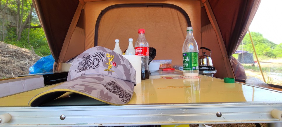 일행들과 도착 좌대를 피고 낚시대를 편성하고