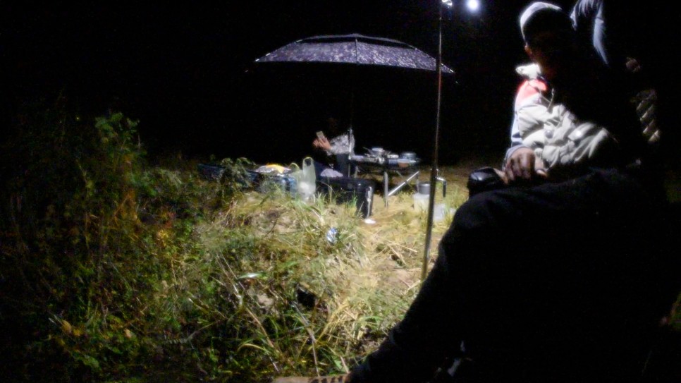 쌀쌀한 가을 밤을 맞아 두터운 옷에 낚시는 계속 이어집니다