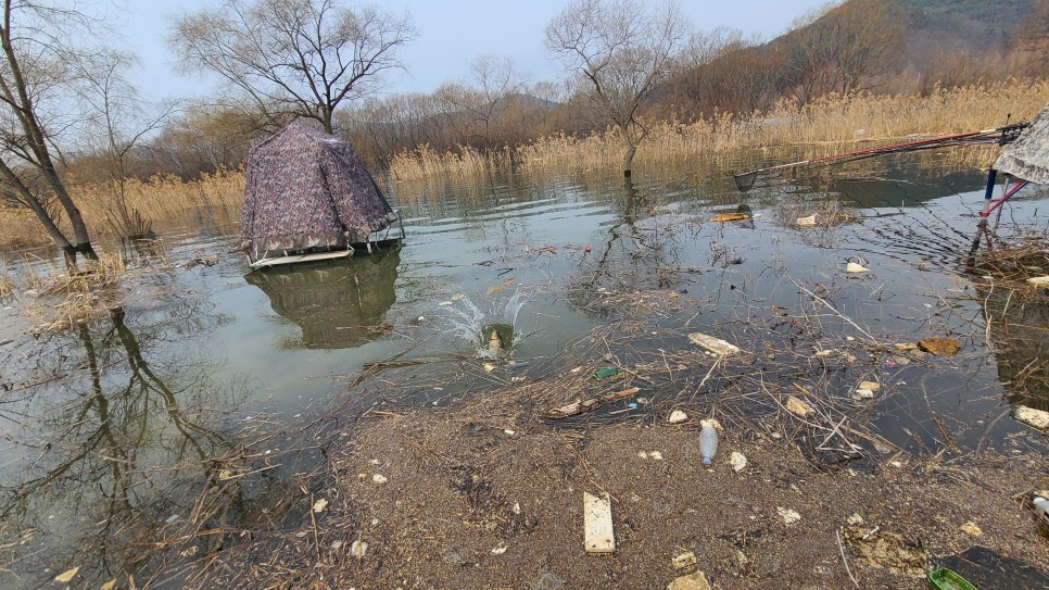 하지만 좋은 포인트에선 허리급들이 들락날락 꾼들을 유혹하는 청천저수지
