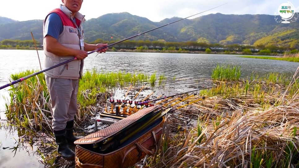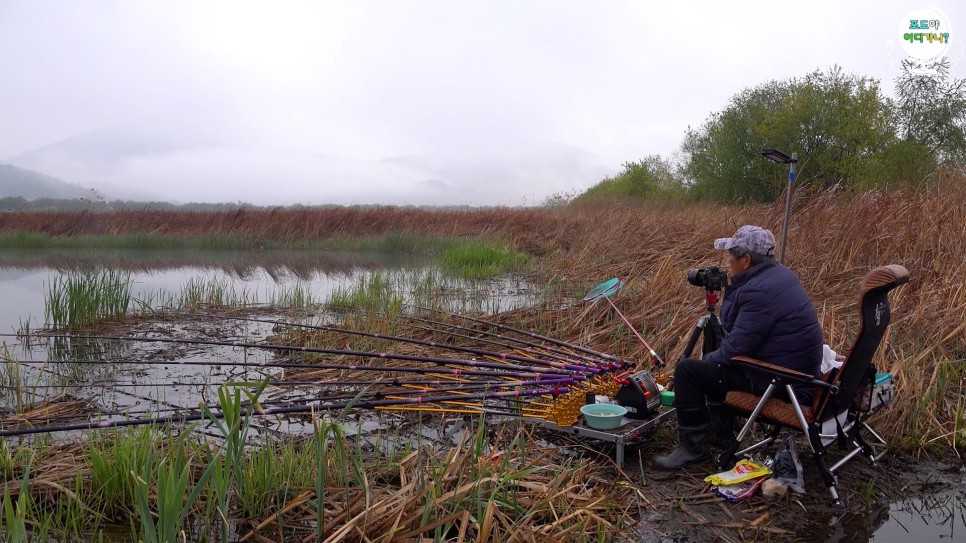 우리는 좋은 계절에 붕어낚시를 떠나 즐거운 시간을 보내고 있습니다
