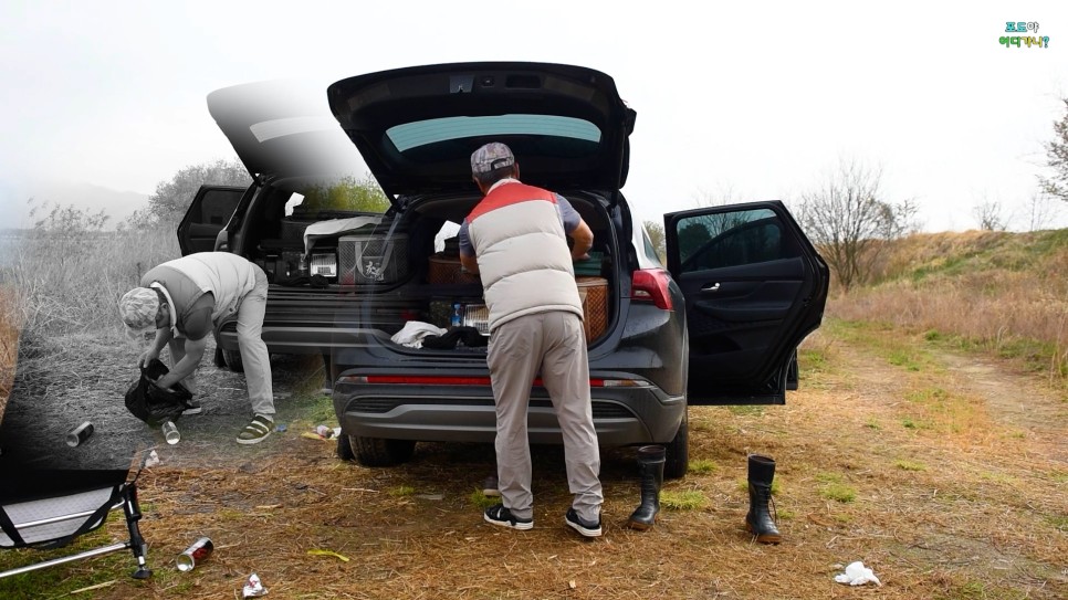 짐을 챙기고 주위 쓰레기 정리, 집으로 갑니다