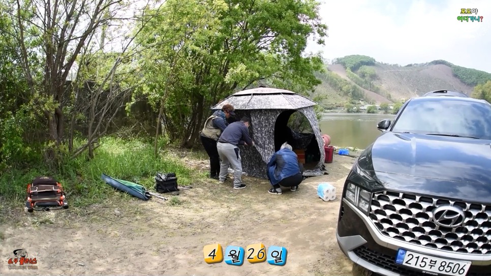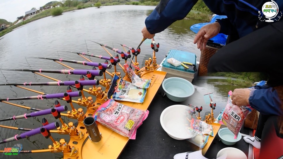 뚝딱 설치하고 낚시대 편성을 합니다