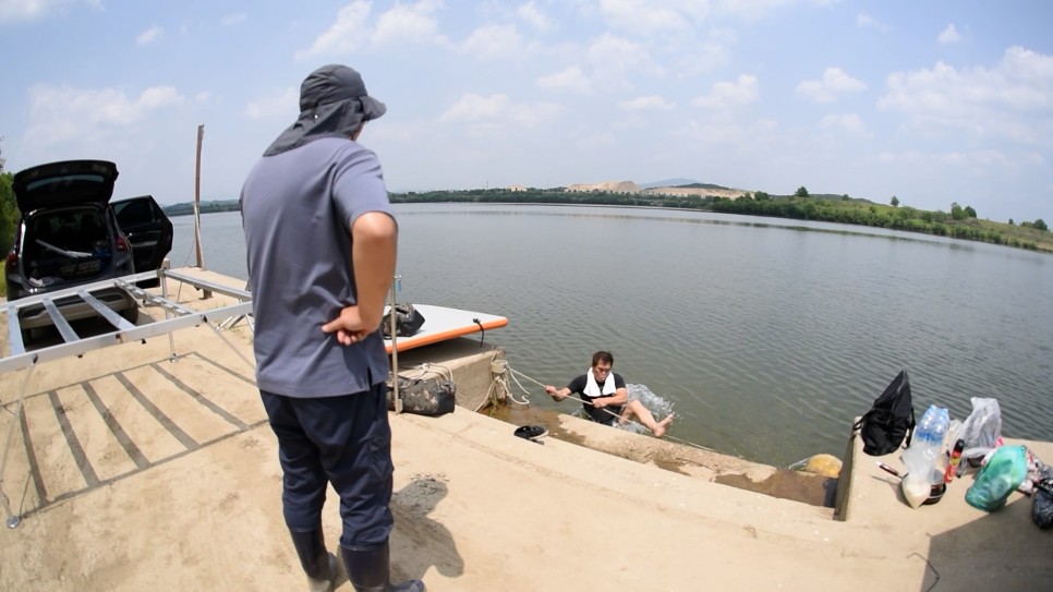 우리는 바쁘게 좌대 설치할 자리 보며