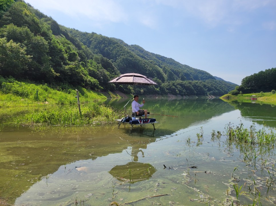 왔으니 붕어들과 한번 만남에 물 곳 수중전까지 마다얺고 낚시를 즐기는 꾼들