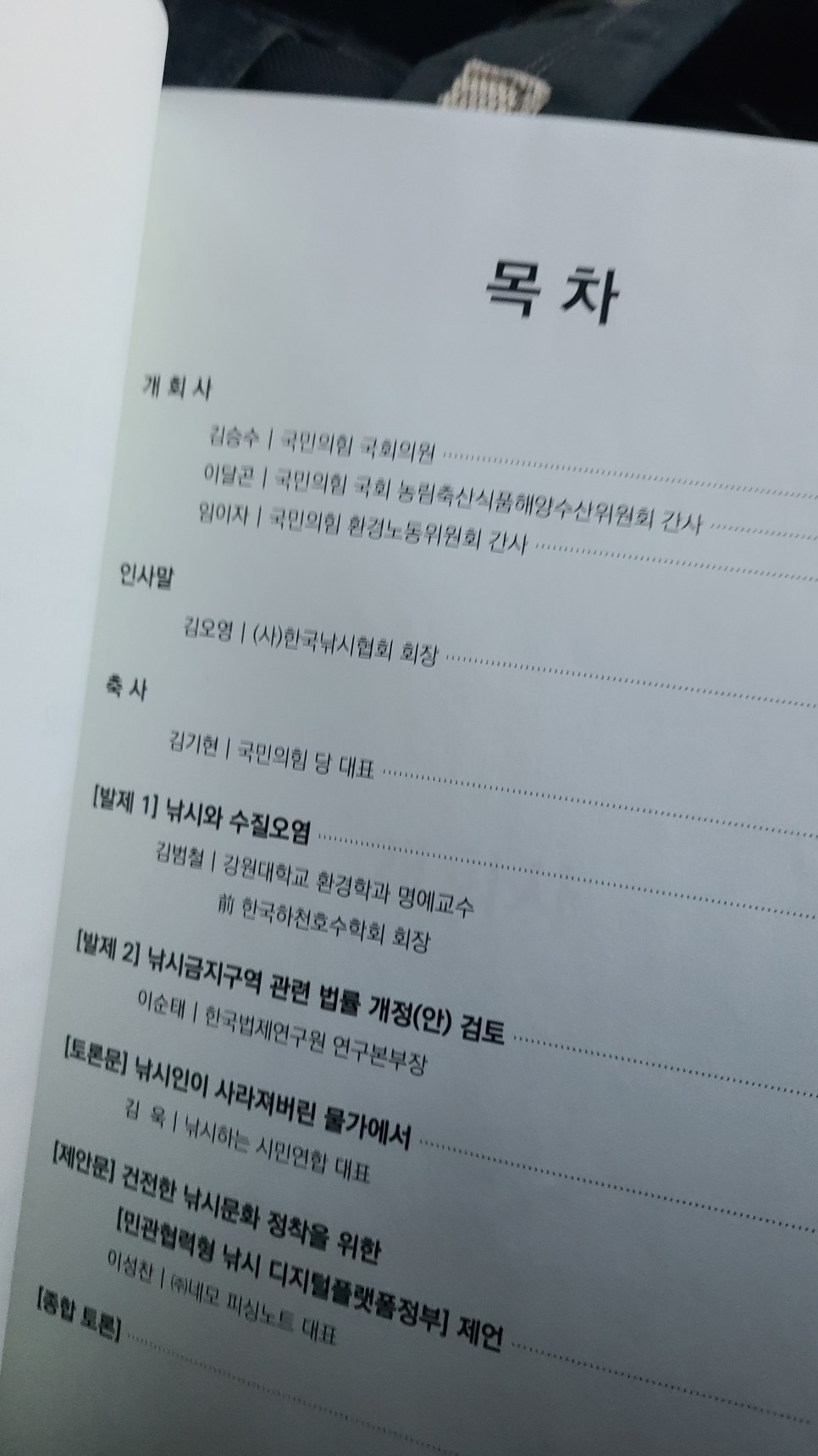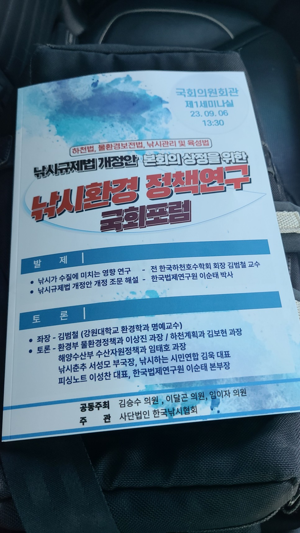 여러가지의 문제로 국회의원님들과 내수면, 해수면 관련된 분들과의 토론이 시작됩니다