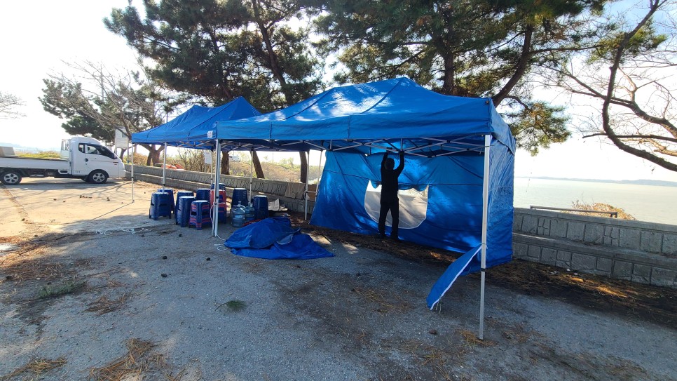도착하여 하나,둘 짐을 내리고 회원님들 맞이할 준비 완료합니다