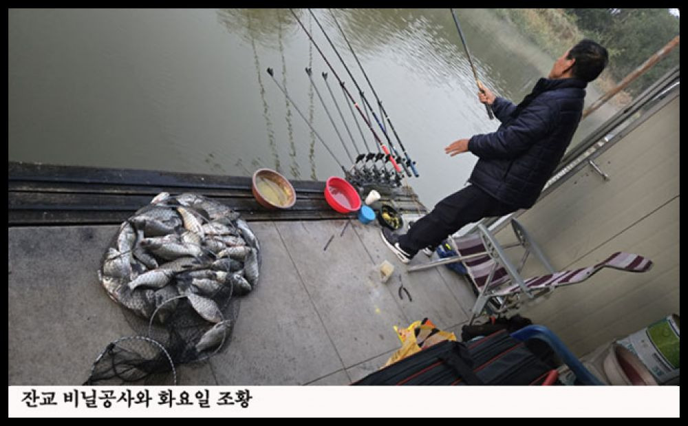 따듯하게 낚시 할수 있도록 잔교에 비닐공사을 해놓았습니다