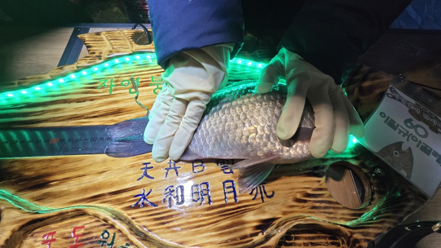 오늘의 붕어 계측 도우미로 승쾌히 허락해주셔 감사합니다