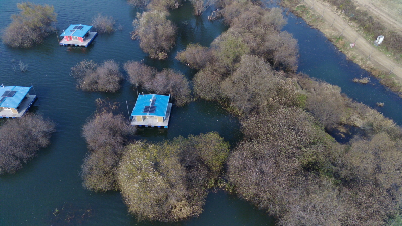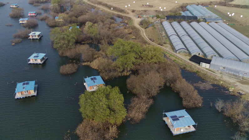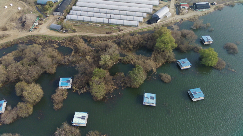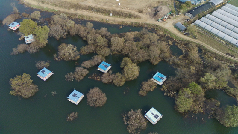 수몰 나무와 갈대가 잘 어우러져 있는
