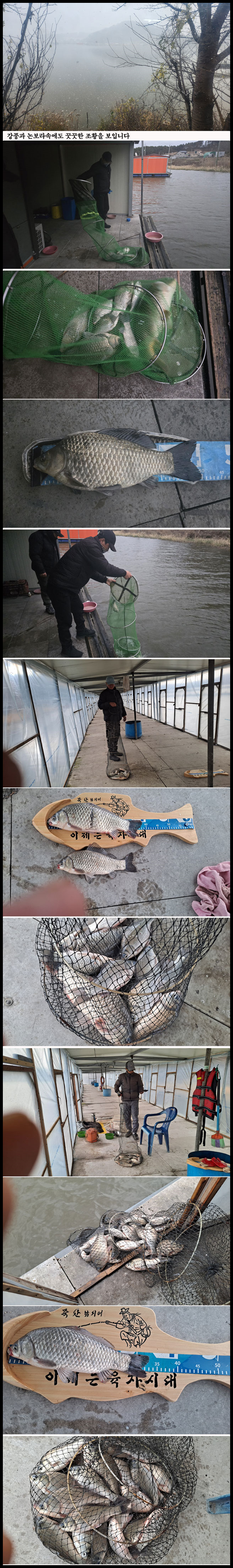 | 악조건 기상속에서도 곳곳에서 토종 대물들이 터지고 꾸준하게 조황이 이어지고 있습니다 죽산지는 향붕어가 아닌 토종과 떡붕어 조황을 보이는곳 으로 개체수가 원낙 많고 아직 결빙이 되지 않아 충븐한 손맛 볼수 있습니다 ![]() |