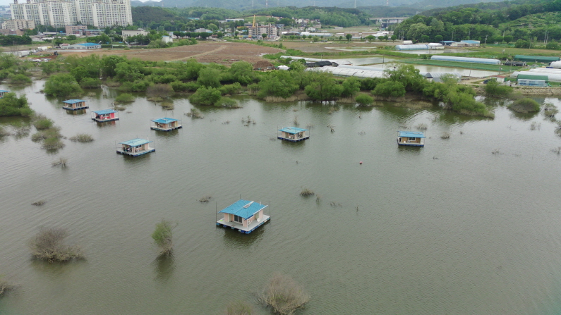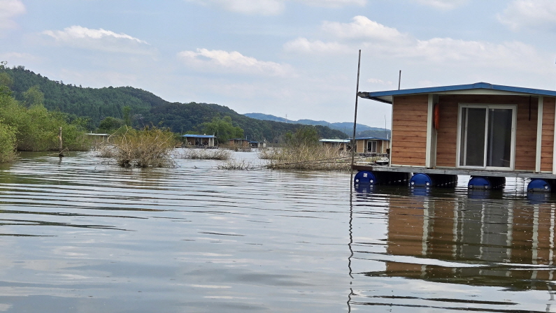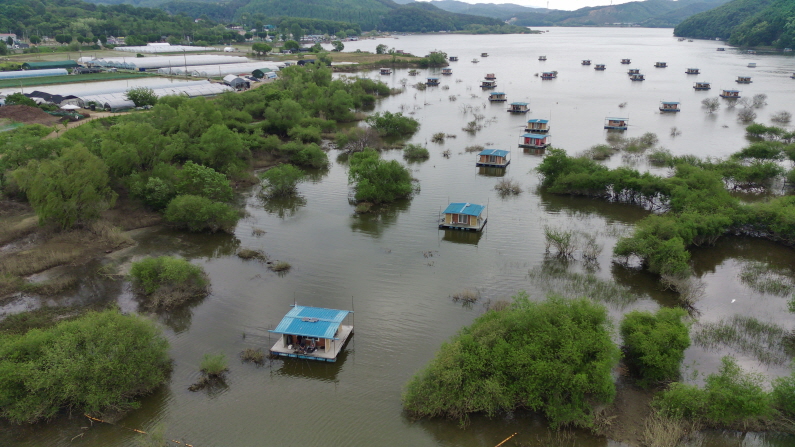 새벽 시간 한바탕 소나기가 쏟아지고흐린 날씨가 이어지고 있습니다.많은 강수가 내리길 기대했지만적은 양의 강수로 배수는 계속되고 있는 가운데 송전지 저수율도72.23%대로 내려가고 있습니