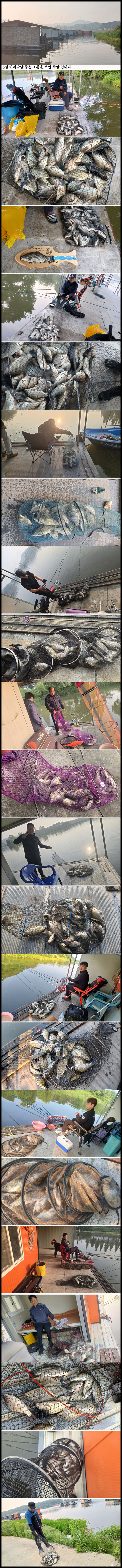 대박도 터지고 좋은 조황을 보인 주말 입니다 상류 수초권에는 마리수가 좋았고 이번 새로 이동한 중상류권에는 씨알 토종들이 함께 올라 오면서 좋은 조황이 계속 되고 있어 골프장쪽 좌대을 뒤쪽으로 조금씩 이동하여 1,5~2m권으로 이동 배치가 될예정 입니다 ![]() |
