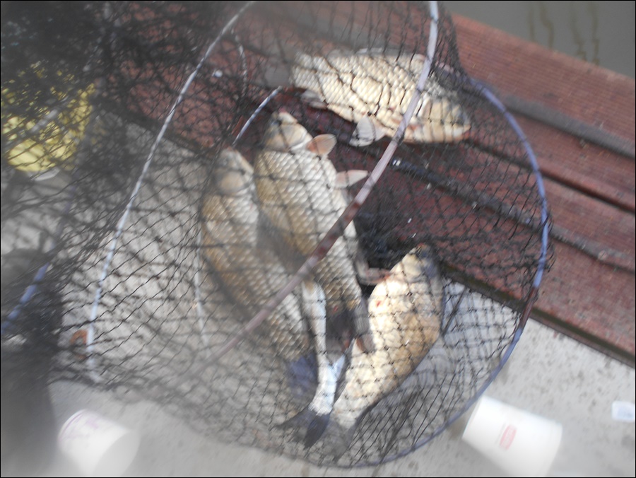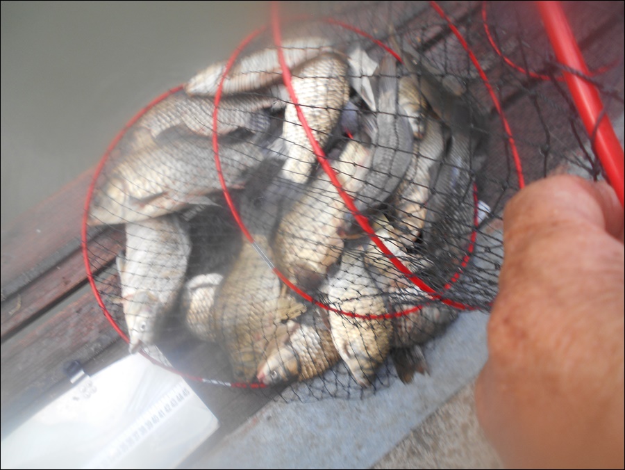 크기 좋은 붕어들 올가오고 있는 모습입니다