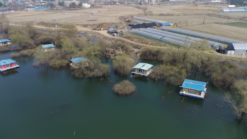 봄비가 그치고 저수지엔